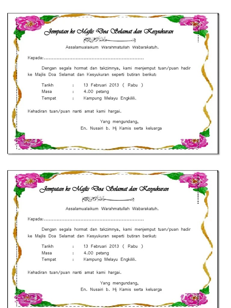Post a Comment for "Contoh Kad Jemputan Majlis Persaraan : Kad Jemputan Merentas Desa 2015"